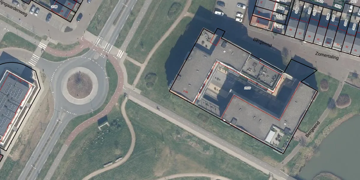 Het perceel waarop Bergeend 19 staat heeft een oppervlakte van 3000 m². Dit is een zeer groot perceel. De perceeloppervlakte wordt geregistreerd door het Kadaster. Gedetailleerde informatie over de maten van dit perceel kunt u vinden in het rapport Kadastrale kaart met maatvoering van Bergeend 19.