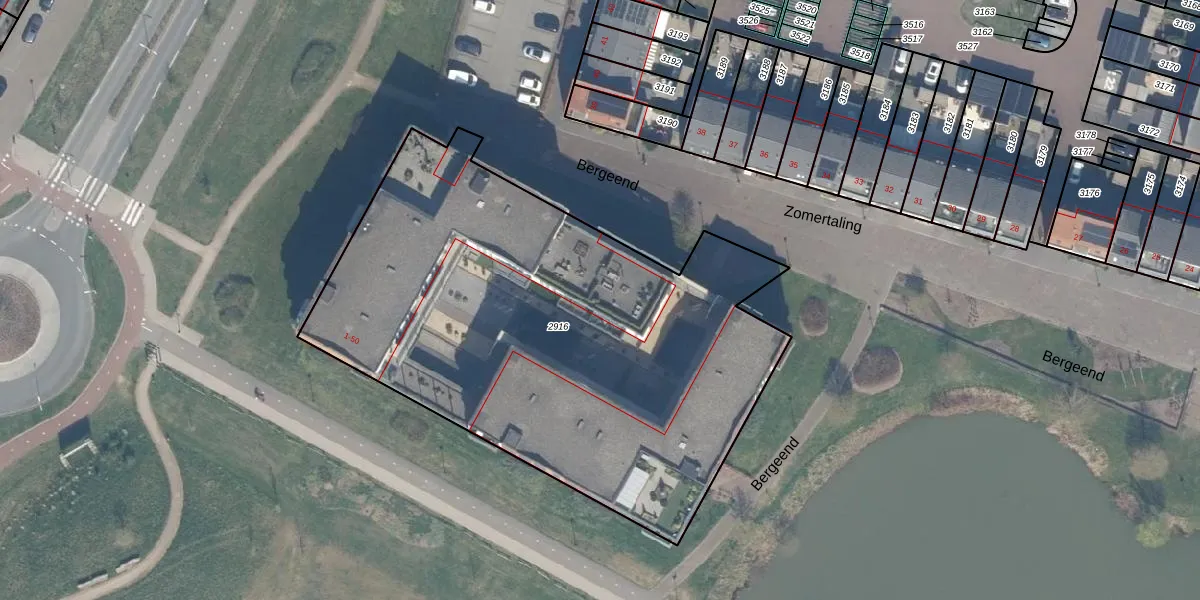 Het perceel waarop Bergeend 39 staat heeft een oppervlakte van 3000 m². Dit is een zeer groot perceel. De perceeloppervlakte wordt geregistreerd door het Kadaster. Gedetailleerde informatie over de maten van dit perceel kunt u vinden in het rapport Kadastrale kaart met maatvoering van Bergeend 39.