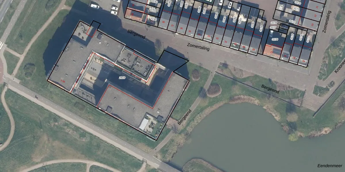 Het perceel waarop Bergeend 40 staat heeft een oppervlakte van 3000 m². Dit is een zeer groot perceel. De perceeloppervlakte wordt geregistreerd door het Kadaster. Gedetailleerde informatie over de maten van dit perceel kunt u vinden in het rapport Kadastrale kaart met maatvoering van Bergeend 40.