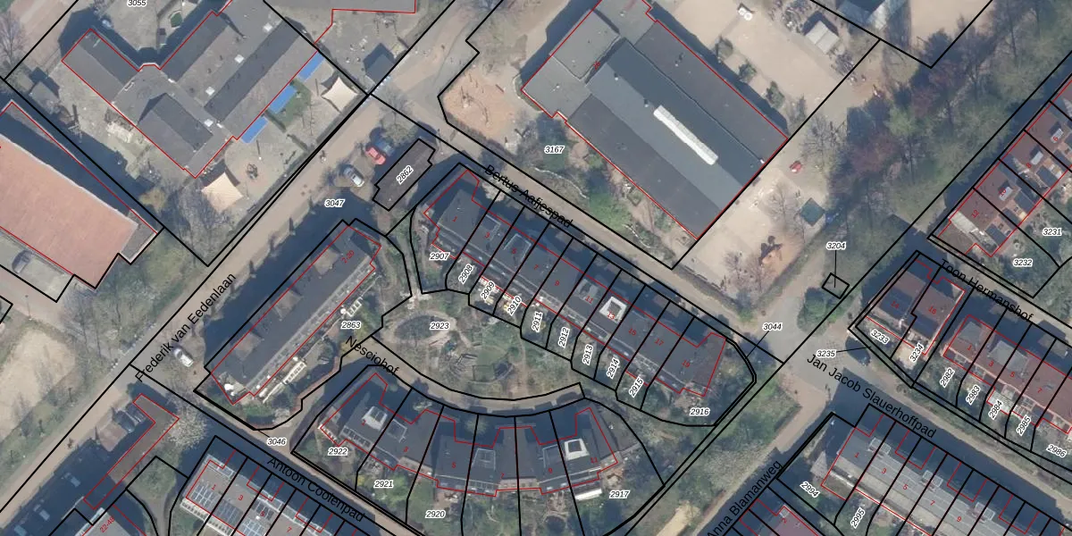 Gebruik de zoekbalk of klik op een perceel voor informatie over de adressen binnen dit perceel.