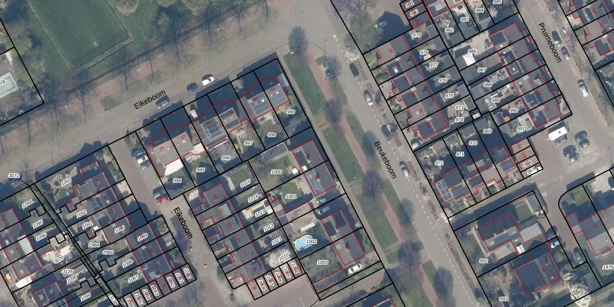 Gebruik de zoekbalk of klik op een perceel voor informatie over de adressen binnen dit perceel.