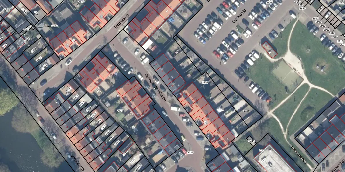 Het perceel waarop Binnen de Wallen 8 staat heeft een oppervlakte van 3424 m². Dit is een zeer groot perceel. De perceeloppervlakte wordt geregistreerd door het Kadaster. Gedetailleerde informatie over de maten van dit perceel kunt u vinden in het rapport Kadastrale kaart met maatvoering van Binnen de Wallen 8.
