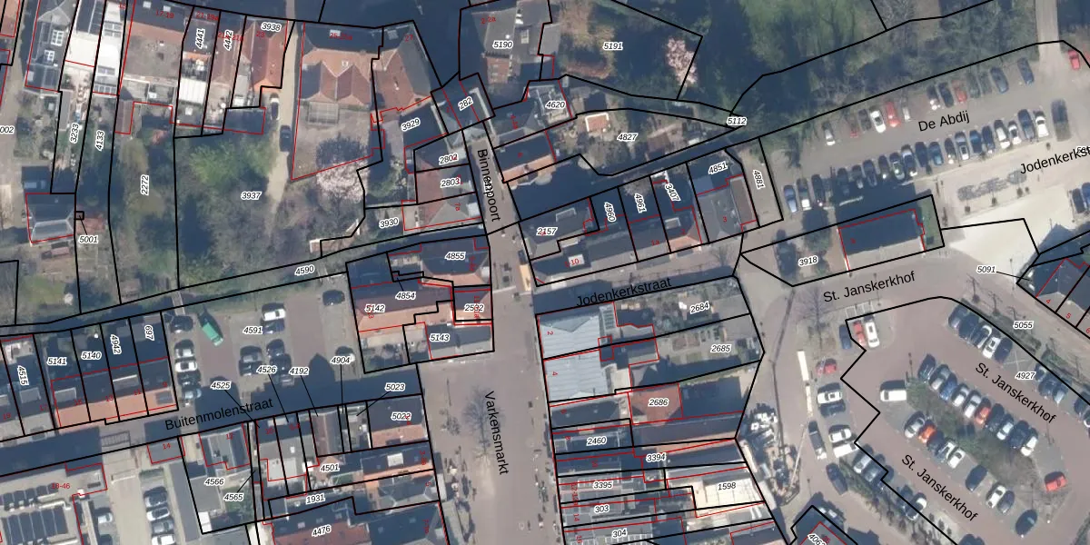 Het perceel waarop Binnenpoort 10 staat heeft een oppervlakte van 157 m². Dit is een middelgroot perceel. De perceeloppervlakte wordt geregistreerd door het Kadaster. Gedetailleerde informatie over de maten van dit perceel kunt u vinden in het rapport Kadastrale kaart met maatvoering van Binnenpoort 10.