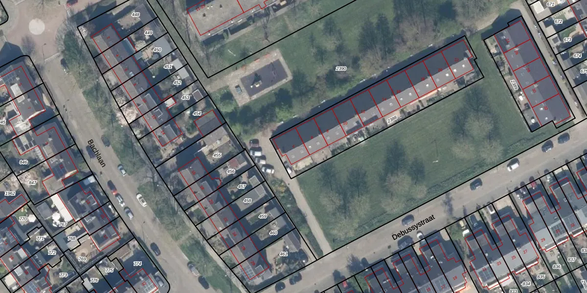 Het perceel waarop Debussystraat 4 staat heeft een oppervlakte van 1140 m². Dit is een zeer groot perceel. De perceeloppervlakte wordt geregistreerd door het Kadaster. Gedetailleerde informatie over de maten van dit perceel kunt u vinden in het rapport Kadastrale kaart met maatvoering van Debussystraat 4.