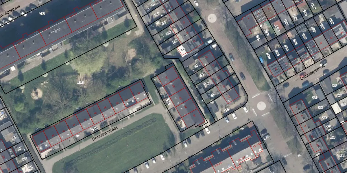 Het perceel waarop Debussystraat 60 staat heeft een oppervlakte van 575 m². Dit is een groot perceel. De perceeloppervlakte wordt geregistreerd door het Kadaster. Gedetailleerde informatie over de maten van dit perceel kunt u vinden in het rapport Kadastrale kaart met maatvoering van Debussystraat 60.
