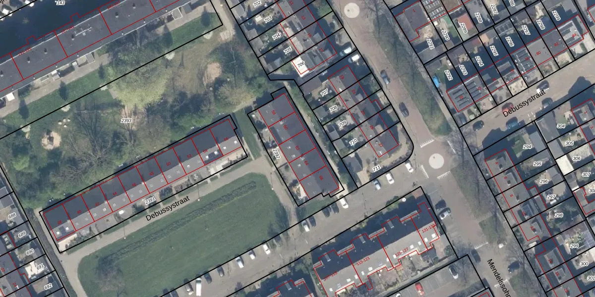 Het perceel waarop Debussystraat 62 staat heeft een oppervlakte van 575 m². Dit is een groot perceel. De perceeloppervlakte wordt geregistreerd door het Kadaster. Gedetailleerde informatie over de maten van dit perceel kunt u vinden in het rapport Kadastrale kaart met maatvoering van Debussystraat 62.