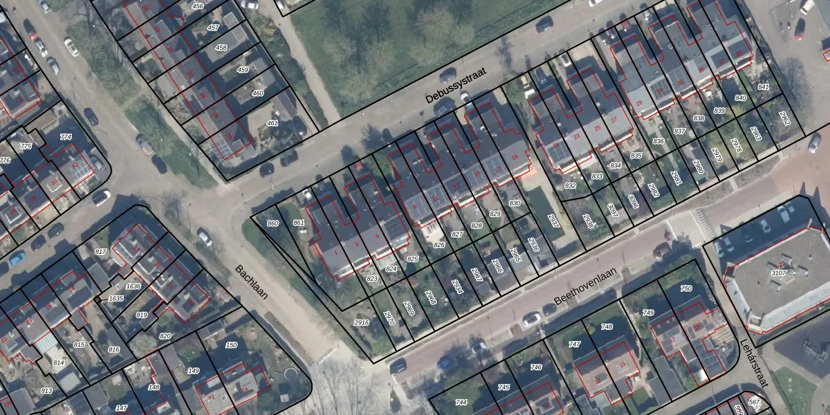 Gebruik de zoekbalk of klik op een perceel voor informatie over de adressen binnen dit perceel.