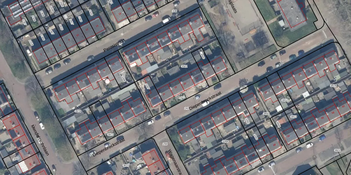 Het perceel waarop Diepenbrockstraat 18 staat heeft een oppervlakte van 1929 m². Dit is een zeer groot perceel. De perceeloppervlakte wordt geregistreerd door het Kadaster. Gedetailleerde informatie over de maten van dit perceel kunt u vinden in het rapport Kadastrale kaart met maatvoering van Diepenbrockstraat 18.