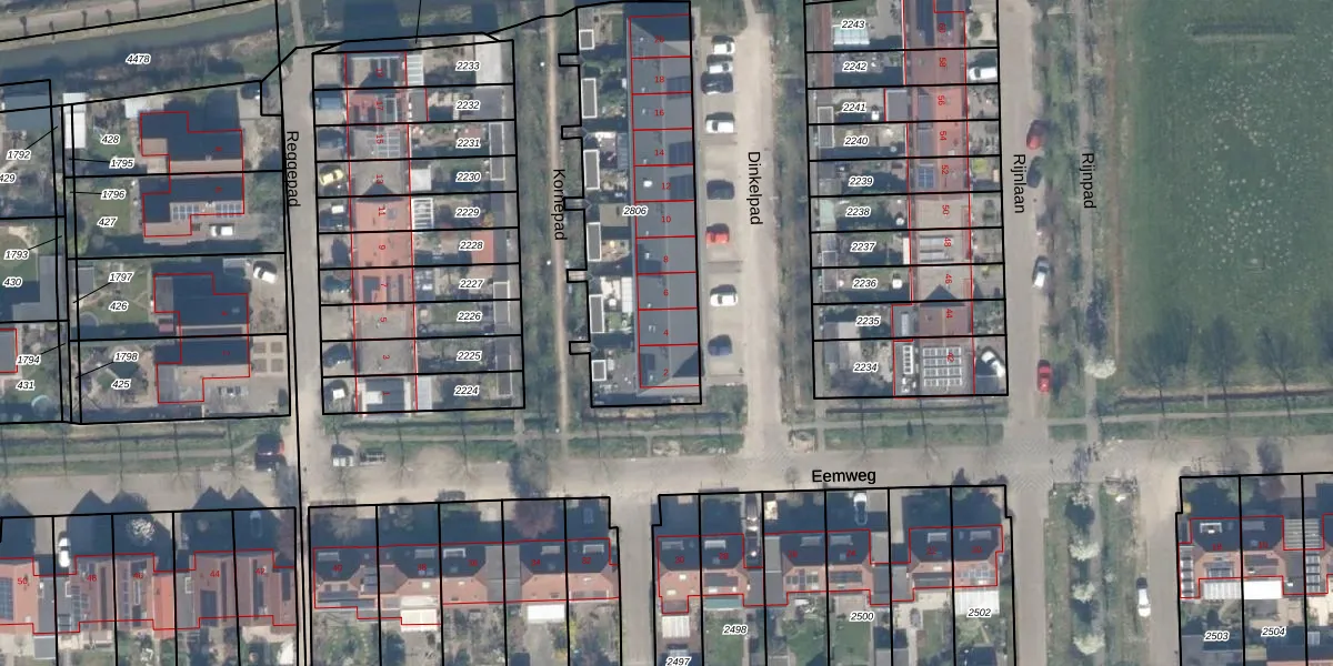 Het perceel waarop Dinkelpad 4 staat heeft een oppervlakte van 1035 m². Dit is een zeer groot perceel. De perceeloppervlakte wordt geregistreerd door het Kadaster. Gedetailleerde informatie over de maten van dit perceel kunt u vinden in het rapport Kadastrale kaart met maatvoering van Dinkelpad 4.