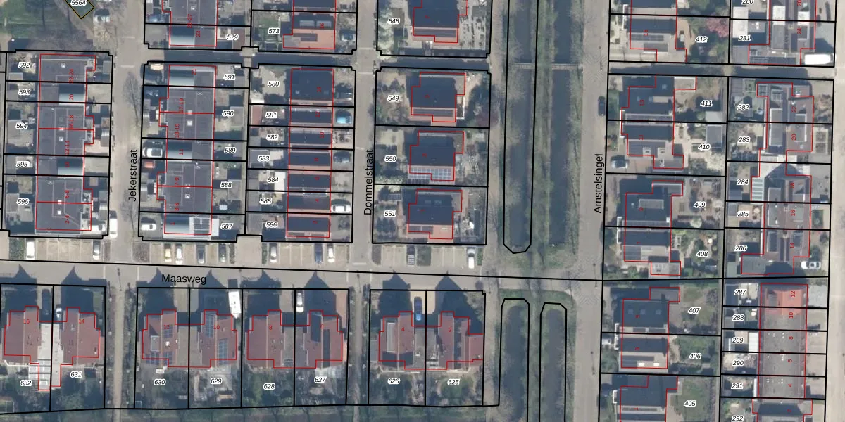 Het perceel waarop Dommelstraat 1 staat heeft een oppervlakte van 375 m². Dit is een groot perceel. De perceeloppervlakte wordt geregistreerd door het Kadaster. Gedetailleerde informatie over de maten van dit perceel kunt u vinden in het rapport Kadastrale kaart met maatvoering van Dommelstraat 1.