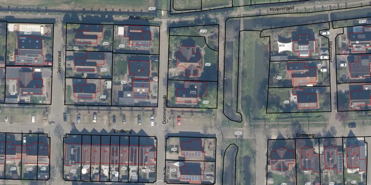 Gebruik de zoekbalk of klik op een perceel voor informatie over de adressen binnen dit perceel.