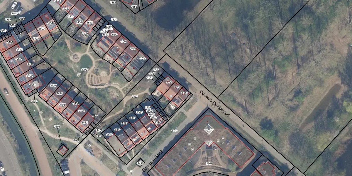 Het perceel waarop Douwes Dekkerpad 21 staat heeft een oppervlakte van 91 m². Dit is een klein perceel. De perceeloppervlakte wordt geregistreerd door het Kadaster. Gedetailleerde informatie over de maten van dit perceel kunt u vinden in het rapport Kadastrale kaart met maatvoering van Douwes Dekkerpad 21.