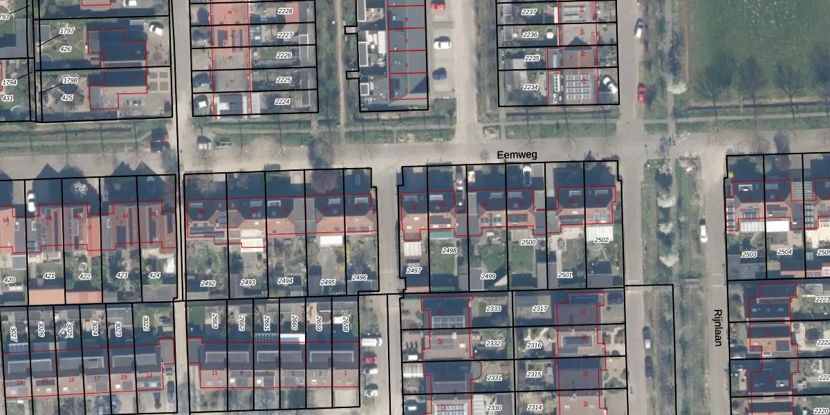 Het perceel waarop Eemweg 30 staat heeft een oppervlakte van 208 m². Dit is een middelgroot perceel. De perceeloppervlakte wordt geregistreerd door het Kadaster. Gedetailleerde informatie over de maten van dit perceel kunt u vinden in het rapport Kadastrale kaart met maatvoering van Eemweg 30.