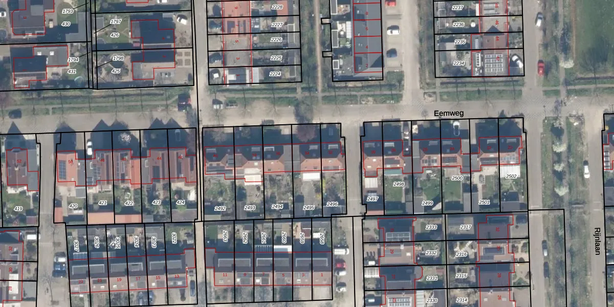 Gebruik de zoekbalk of klik op een perceel voor informatie over de adressen binnen dit perceel.