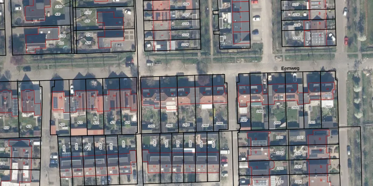Het perceel waarop Eemweg 36 staat heeft een oppervlakte van 289 m². Dit is een middelgroot perceel. De perceeloppervlakte wordt geregistreerd door het Kadaster. Gedetailleerde informatie over de maten van dit perceel kunt u vinden in het rapport Kadastrale kaart met maatvoering van Eemweg 36.