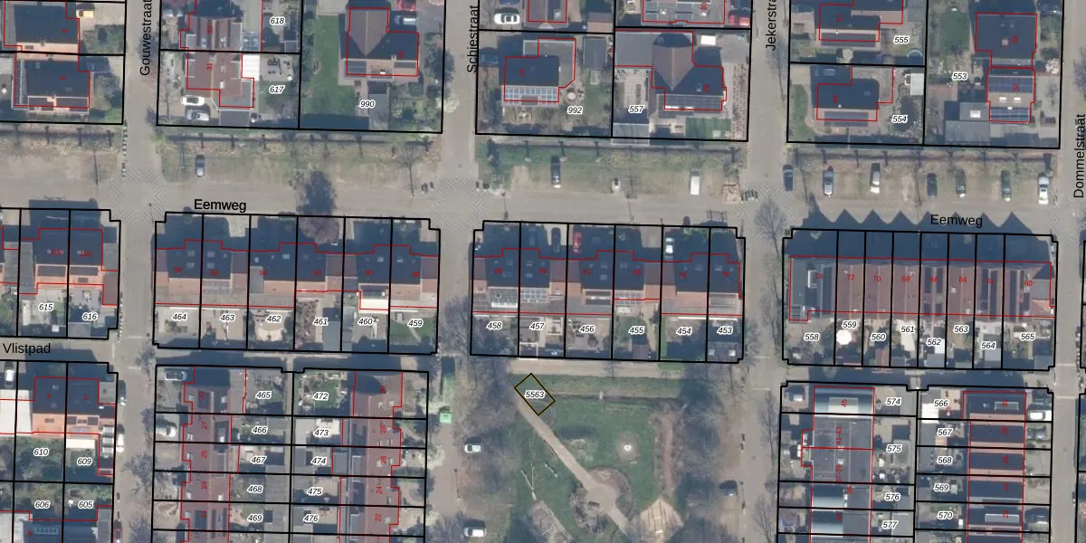 Gebruik de zoekbalk of klik op een perceel voor informatie over de adressen binnen dit perceel.