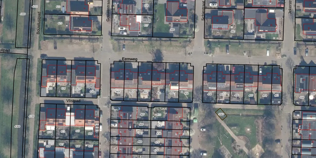 Gebruik de zoekbalk of klik op een perceel voor informatie over de adressen binnen dit perceel.