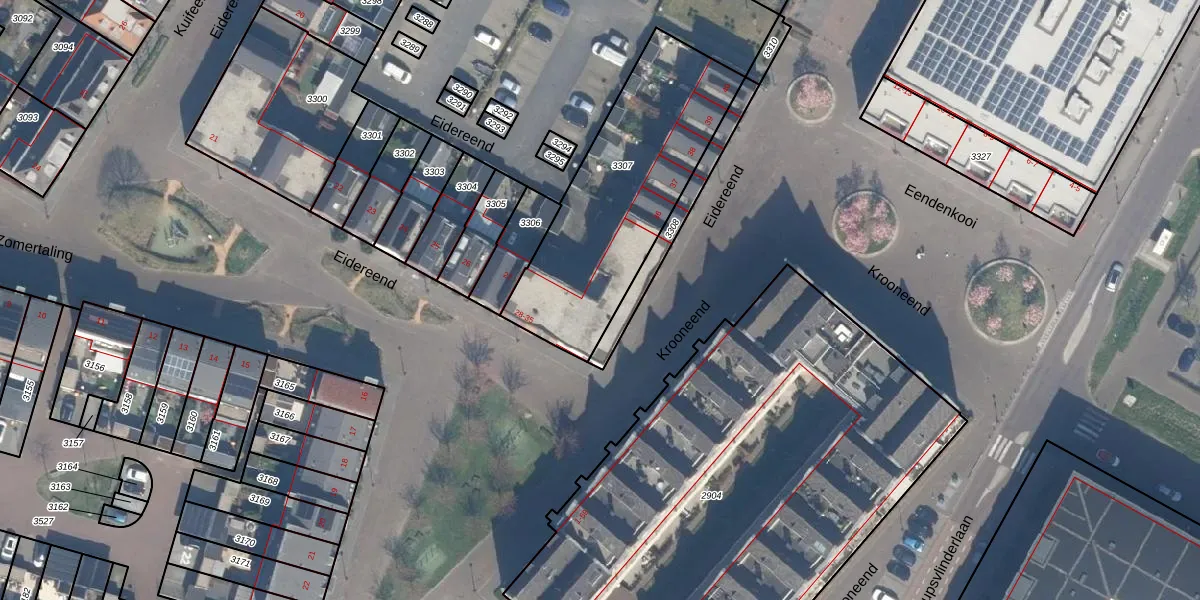 Het perceel waarop Eidereend 33 staat heeft een oppervlakte van 917 m². Dit is een groot perceel. De perceeloppervlakte wordt geregistreerd door het Kadaster. Gedetailleerde informatie over de maten van dit perceel kunt u vinden in het rapport Kadastrale kaart met maatvoering van Eidereend 33.
