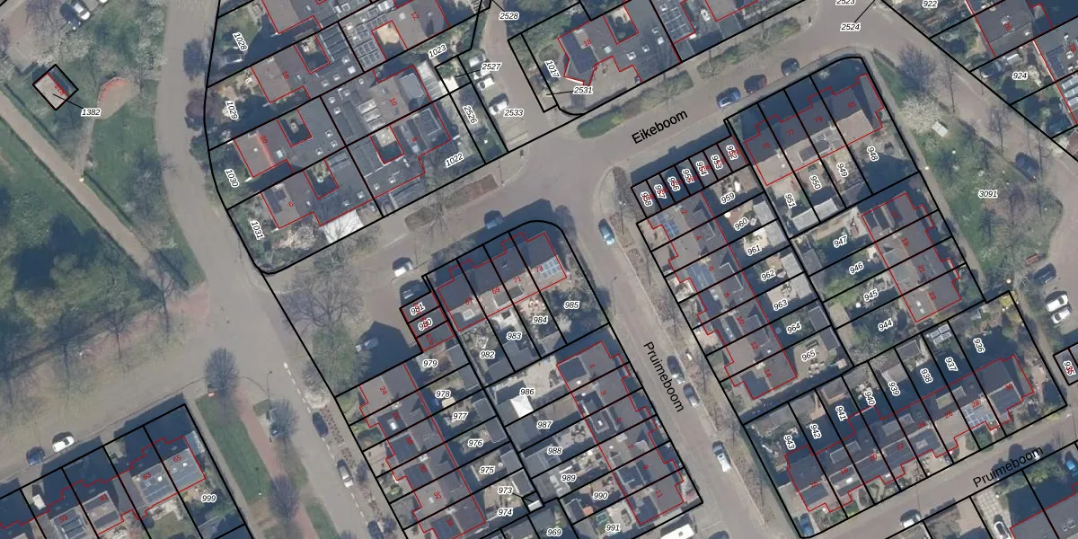 Gebruik de zoekbalk of klik op een perceel voor informatie over de adressen binnen dit perceel.