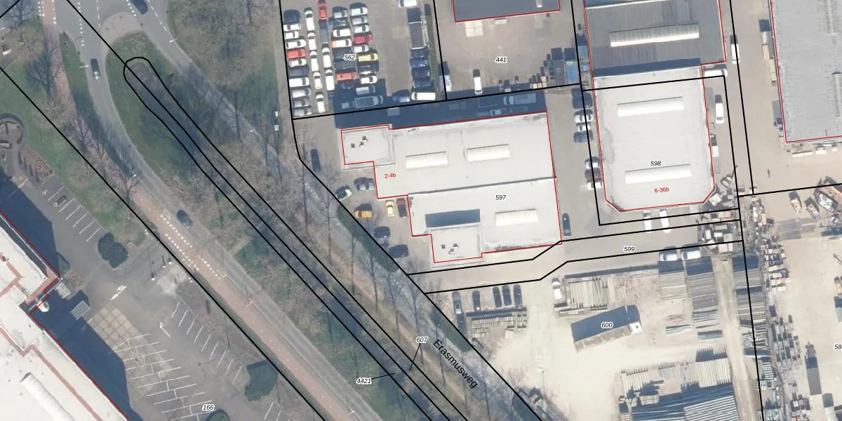 Erasmusweg 4 is gelegen op kadastraal perceel CLB00D597. Deze kadastrale aanduiding is uniek en wordt gebruikt door het Kadaster om eigendomsrechten en andere zakelijke rechten vast te leggen. Het perceel maakt onderdeel uit van de kadastrale gemeente Culemborg.