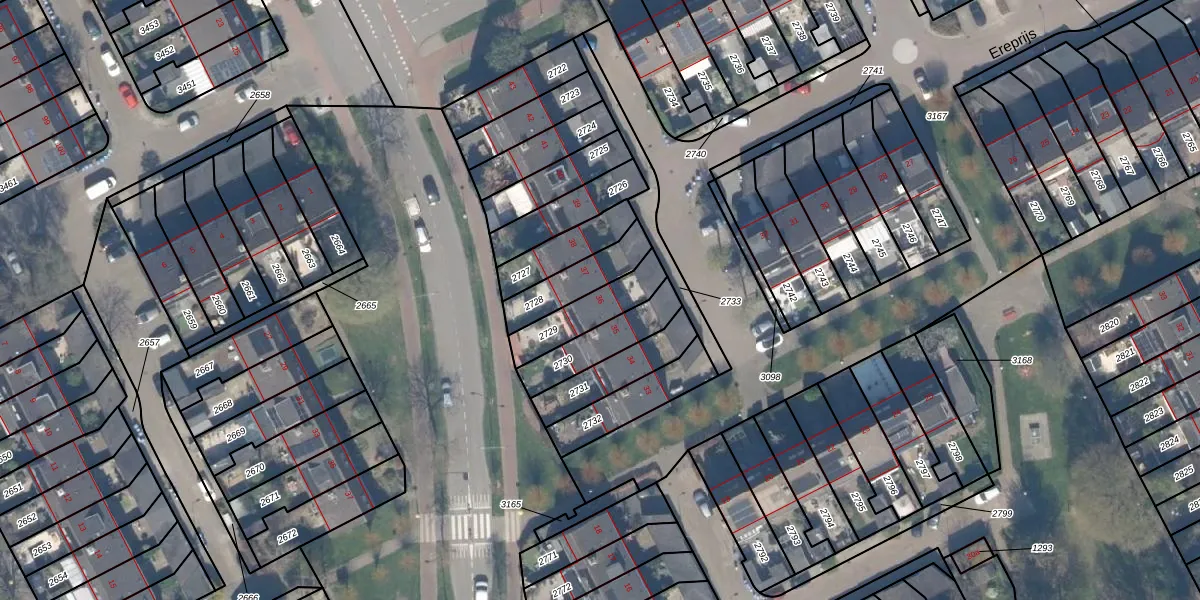 Het perceel waarop Ereprijs 36 staat heeft een oppervlakte van 159 m². Dit is een middelgroot perceel. De perceeloppervlakte wordt geregistreerd door het Kadaster. Gedetailleerde informatie over de maten van dit perceel kunt u vinden in het rapport Kadastrale kaart met maatvoering van Ereprijs 36.