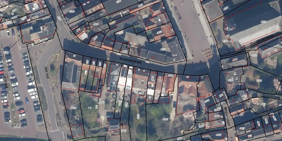 Het perceel waarop Everwijnstraat 17-a staat heeft een oppervlakte van 639 m². Dit is een groot perceel. De perceeloppervlakte wordt geregistreerd door het Kadaster. Gedetailleerde informatie over de maten van dit perceel kunt u vinden in het rapport Kadastrale kaart met maatvoering van Everwijnstraat 17-a.