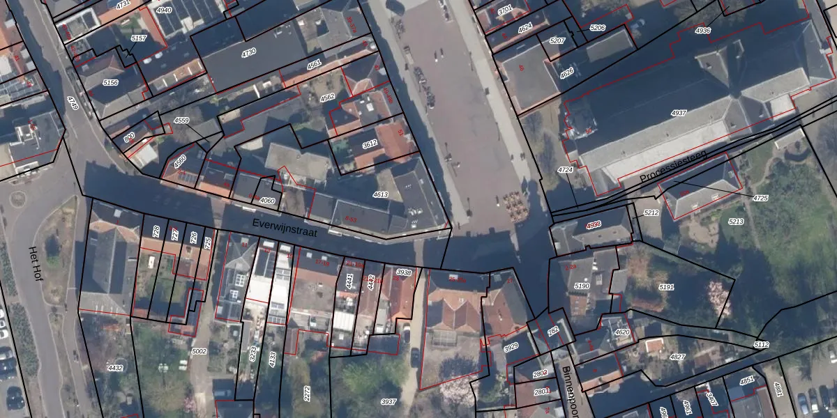Het perceel waarop Everwijnstraat 46 staat heeft een oppervlakte van 781 m². Dit is een groot perceel. De perceeloppervlakte wordt geregistreerd door het Kadaster. Gedetailleerde informatie over de maten van dit perceel kunt u vinden in het rapport Kadastrale kaart met maatvoering van Everwijnstraat 46.