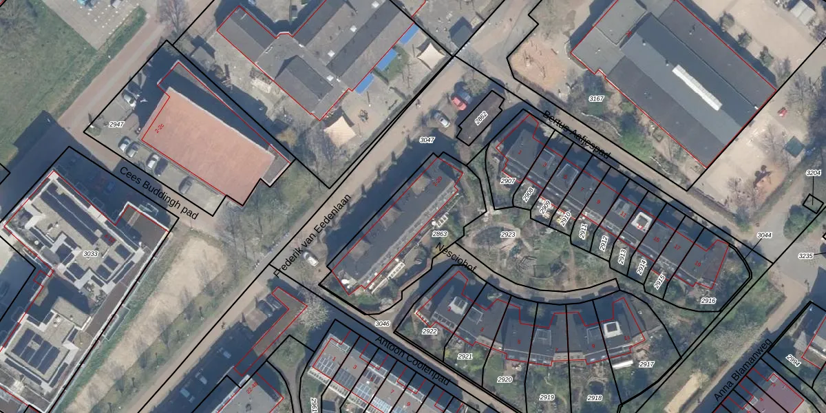 Frederik van Eedenlaan 8 is gelegen op kadastraal perceel CLB00C2863. Deze kadastrale aanduiding is uniek en wordt gebruikt door het Kadaster om eigendomsrechten en andere zakelijke rechten vast te leggen. Het perceel maakt onderdeel uit van de kadastrale gemeente Culemborg.