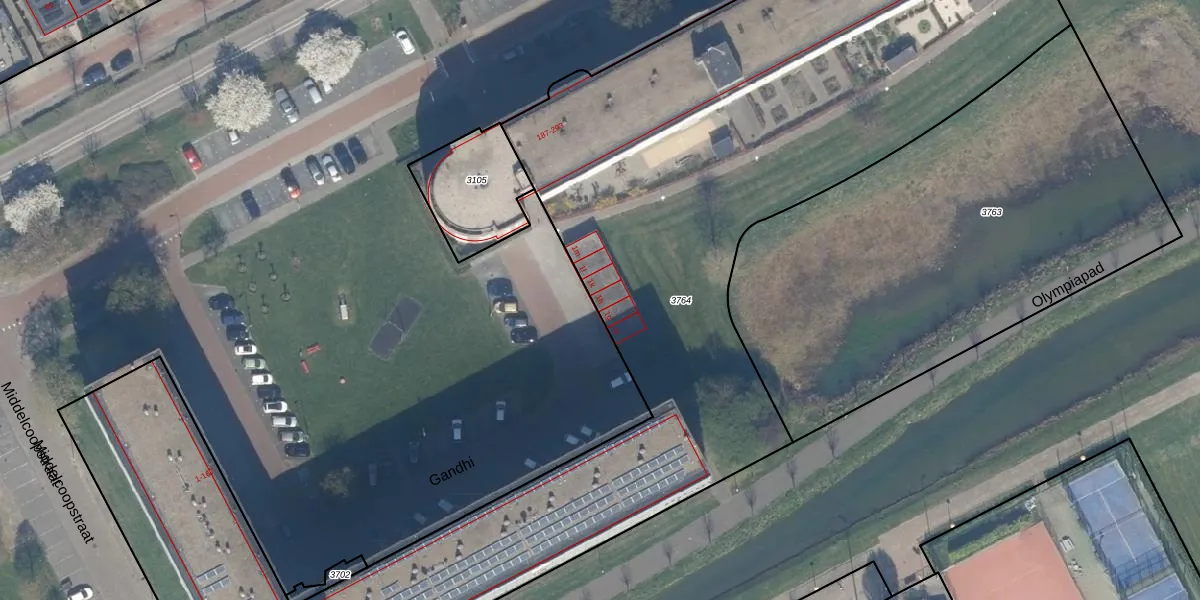 Het perceel waarop Gandhi 1-h staat heeft een oppervlakte van 6120 m². Dit is een zeer groot perceel. De perceeloppervlakte wordt geregistreerd door het Kadaster. Gedetailleerde informatie over de maten van dit perceel kunt u vinden in het rapport Kadastrale kaart met maatvoering van Gandhi 1-h.