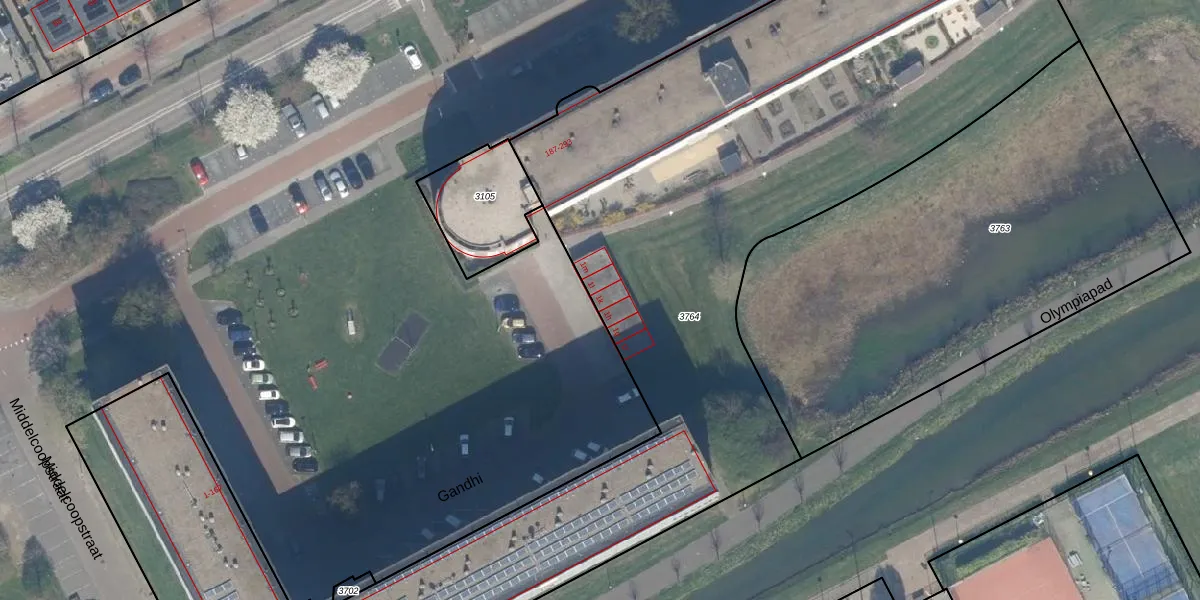 Het perceel waarop Gandhi 1-k staat heeft een oppervlakte van 6120 m². Dit is een zeer groot perceel. De perceeloppervlakte wordt geregistreerd door het Kadaster. Gedetailleerde informatie over de maten van dit perceel kunt u vinden in het rapport Kadastrale kaart met maatvoering van Gandhi 1-k.
