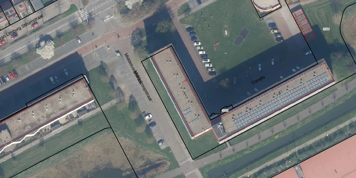 Het perceel waarop Gandhi 13 staat heeft een oppervlakte van 6120 m². Dit is een zeer groot perceel. De perceeloppervlakte wordt geregistreerd door het Kadaster. Gedetailleerde informatie over de maten van dit perceel kunt u vinden in het rapport Kadastrale kaart met maatvoering van Gandhi 13.