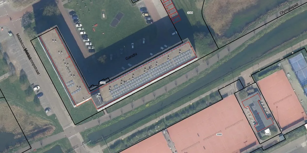 Het perceel waarop Gandhi 135 staat heeft een oppervlakte van 6120 m². Dit is een zeer groot perceel. De perceeloppervlakte wordt geregistreerd door het Kadaster. Gedetailleerde informatie over de maten van dit perceel kunt u vinden in het rapport Kadastrale kaart met maatvoering van Gandhi 135.