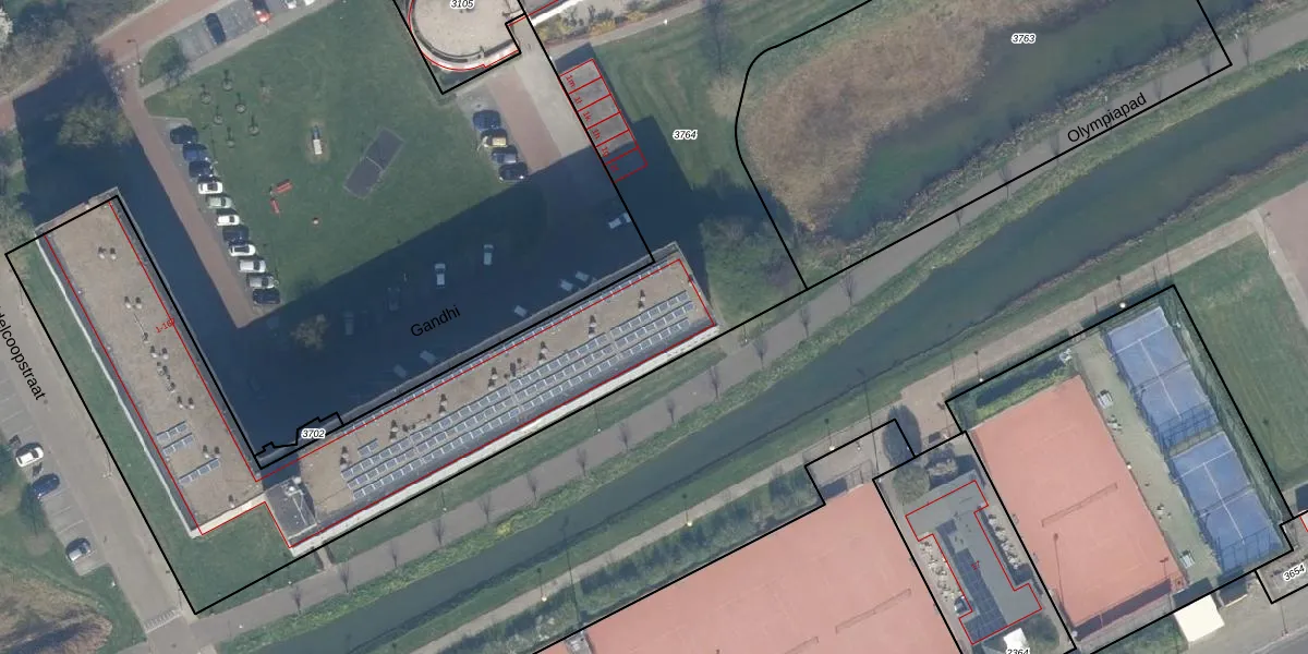 Het perceel waarop Gandhi 157 staat heeft een oppervlakte van 6120 m². Dit is een zeer groot perceel. De perceeloppervlakte wordt geregistreerd door het Kadaster. Gedetailleerde informatie over de maten van dit perceel kunt u vinden in het rapport Kadastrale kaart met maatvoering van Gandhi 157.