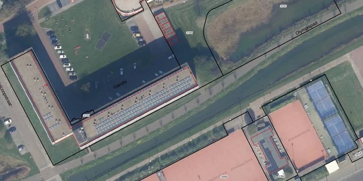 Het perceel waarop Gandhi 159 staat heeft een oppervlakte van 6120 m². Dit is een zeer groot perceel. De perceeloppervlakte wordt geregistreerd door het Kadaster. Gedetailleerde informatie over de maten van dit perceel kunt u vinden in het rapport Kadastrale kaart met maatvoering van Gandhi 159.