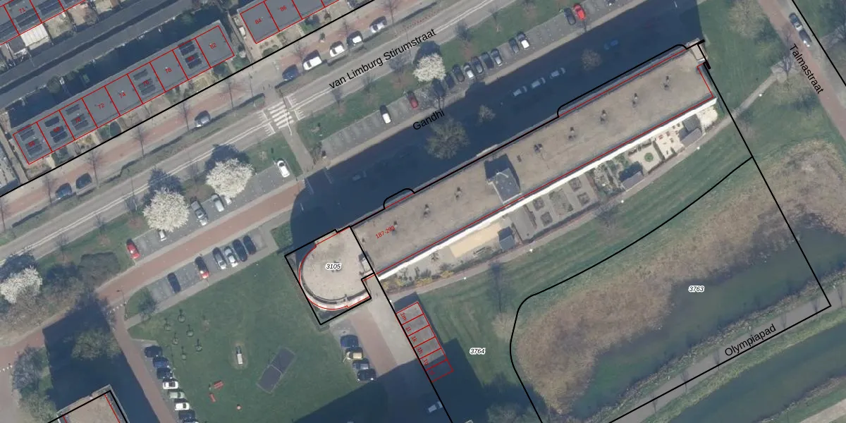 Het perceel waarop Gandhi 207 staat heeft een oppervlakte van 6120 m². Dit is een zeer groot perceel. De perceeloppervlakte wordt geregistreerd door het Kadaster. Gedetailleerde informatie over de maten van dit perceel kunt u vinden in het rapport Kadastrale kaart met maatvoering van Gandhi 207.