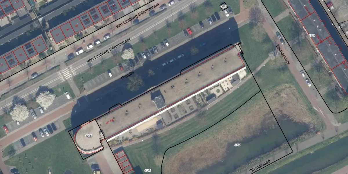 Het perceel waarop Gandhi 245 staat heeft een oppervlakte van 6120 m². Dit is een zeer groot perceel. De perceeloppervlakte wordt geregistreerd door het Kadaster. Gedetailleerde informatie over de maten van dit perceel kunt u vinden in het rapport Kadastrale kaart met maatvoering van Gandhi 245.