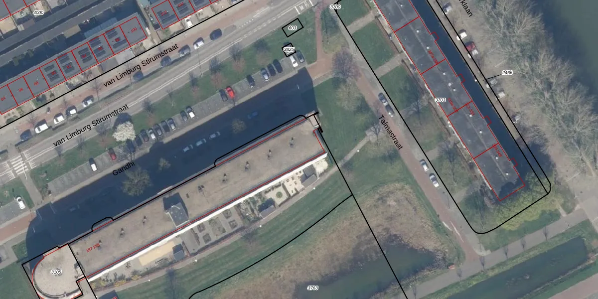 Het perceel waarop Gandhi 287 staat heeft een oppervlakte van 6120 m². Dit is een zeer groot perceel. De perceeloppervlakte wordt geregistreerd door het Kadaster. Gedetailleerde informatie over de maten van dit perceel kunt u vinden in het rapport Kadastrale kaart met maatvoering van Gandhi 287.