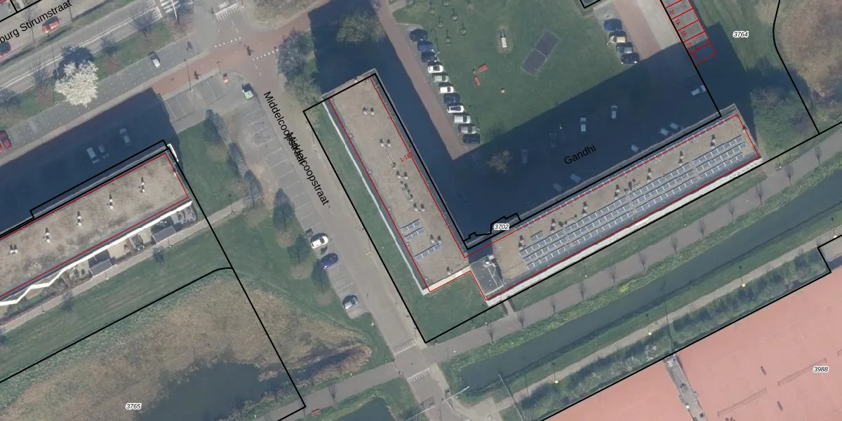 Het perceel waarop Gandhi 35 staat heeft een oppervlakte van 6120 m². Dit is een zeer groot perceel. De perceeloppervlakte wordt geregistreerd door het Kadaster. Gedetailleerde informatie over de maten van dit perceel kunt u vinden in het rapport Kadastrale kaart met maatvoering van Gandhi 35.