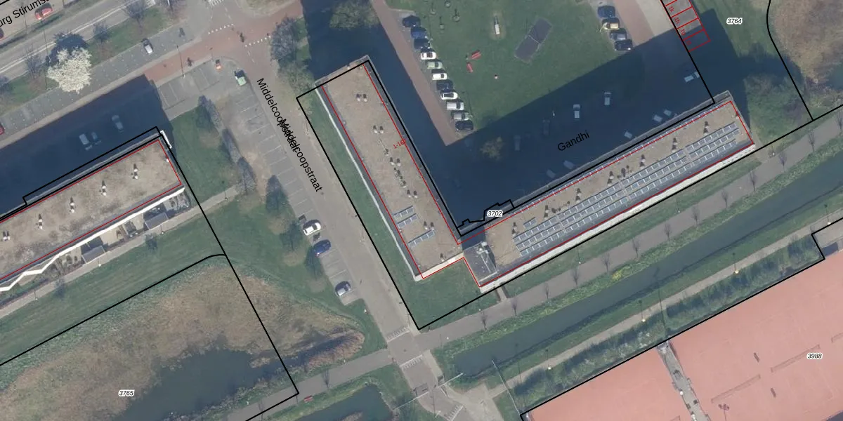 Het perceel waarop Gandhi 43 staat heeft een oppervlakte van 6120 m². Dit is een zeer groot perceel. De perceeloppervlakte wordt geregistreerd door het Kadaster. Gedetailleerde informatie over de maten van dit perceel kunt u vinden in het rapport Kadastrale kaart met maatvoering van Gandhi 43.