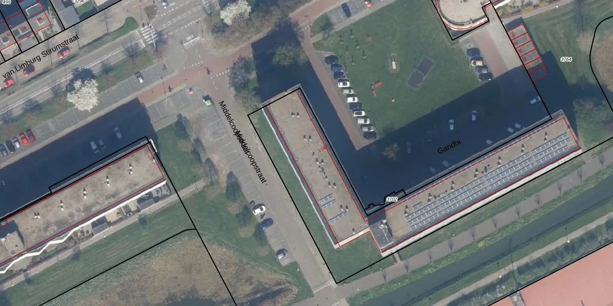 Het perceel waarop Gandhi 5 staat heeft een oppervlakte van 6120 m². Dit is een zeer groot perceel. De perceeloppervlakte wordt geregistreerd door het Kadaster. Gedetailleerde informatie over de maten van dit perceel kunt u vinden in het rapport Kadastrale kaart met maatvoering van Gandhi 5.
