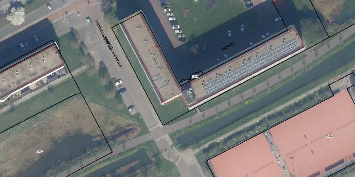 Het perceel waarop Gandhi 65 staat heeft een oppervlakte van 6120 m². Dit is een zeer groot perceel. De perceeloppervlakte wordt geregistreerd door het Kadaster. Gedetailleerde informatie over de maten van dit perceel kunt u vinden in het rapport Kadastrale kaart met maatvoering van Gandhi 65.