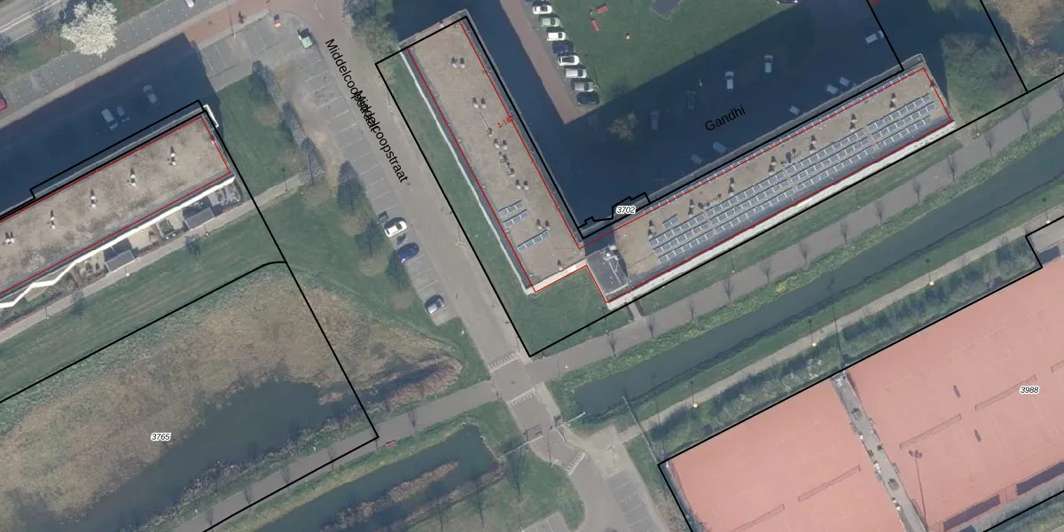 Het perceel waarop Gandhi 71 staat heeft een oppervlakte van 6120 m². Dit is een zeer groot perceel. De perceeloppervlakte wordt geregistreerd door het Kadaster. Gedetailleerde informatie over de maten van dit perceel kunt u vinden in het rapport Kadastrale kaart met maatvoering van Gandhi 71.