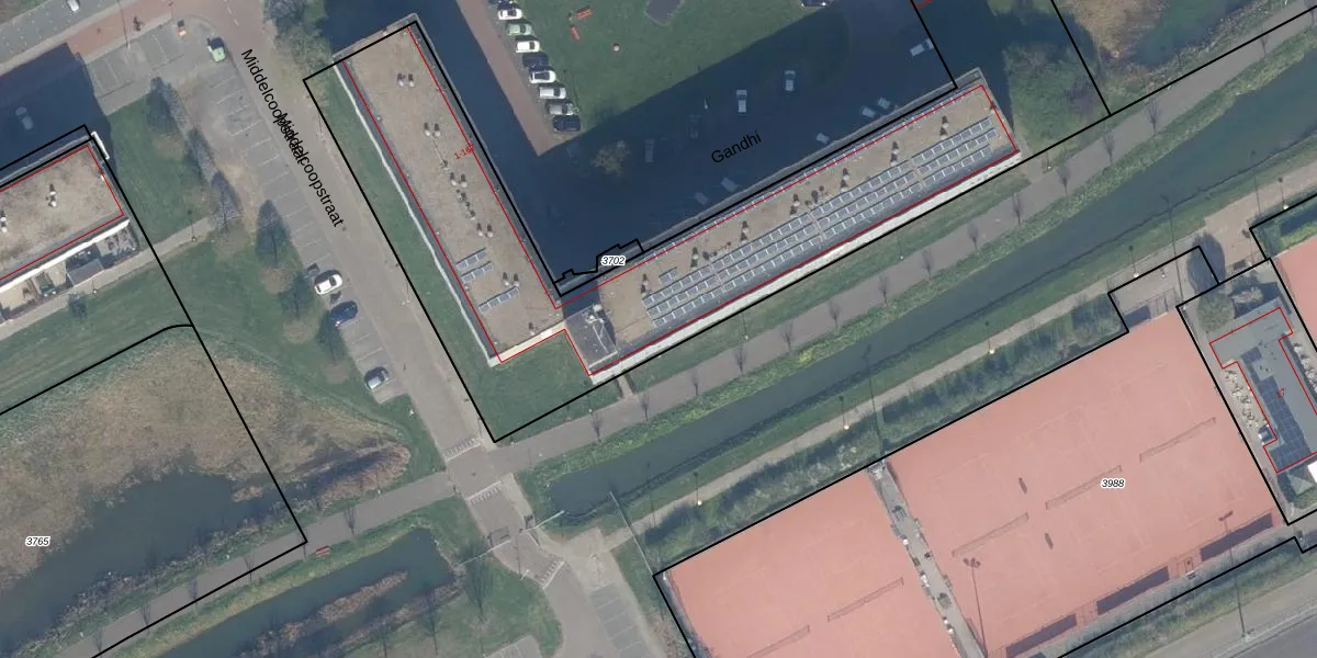 Het perceel waarop Gandhi 95 staat heeft een oppervlakte van 6120 m². Dit is een zeer groot perceel. De perceeloppervlakte wordt geregistreerd door het Kadaster. Gedetailleerde informatie over de maten van dit perceel kunt u vinden in het rapport Kadastrale kaart met maatvoering van Gandhi 95.