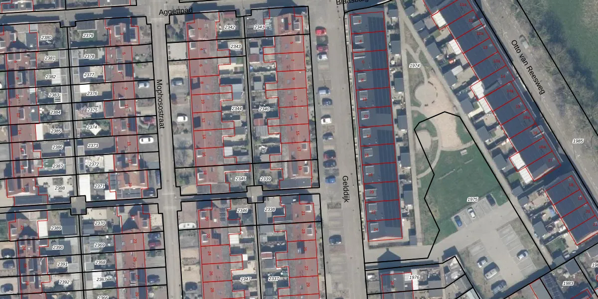 Het perceel waarop Gelddijk 17 staat heeft een oppervlakte van 912 m². Dit is een groot perceel. De perceeloppervlakte wordt geregistreerd door het Kadaster. Gedetailleerde informatie over de maten van dit perceel kunt u vinden in het rapport Kadastrale kaart met maatvoering van Gelddijk 17.