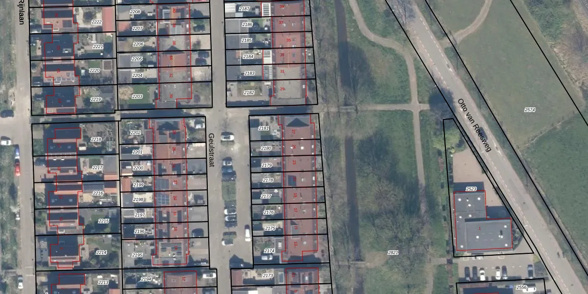 Geulstraat 25 is gelegen op kadastraal perceel CLB00H2180. Deze kadastrale aanduiding is uniek en wordt gebruikt door het Kadaster om eigendomsrechten en andere zakelijke rechten vast te leggen. Het perceel maakt onderdeel uit van de kadastrale gemeente Culemborg.