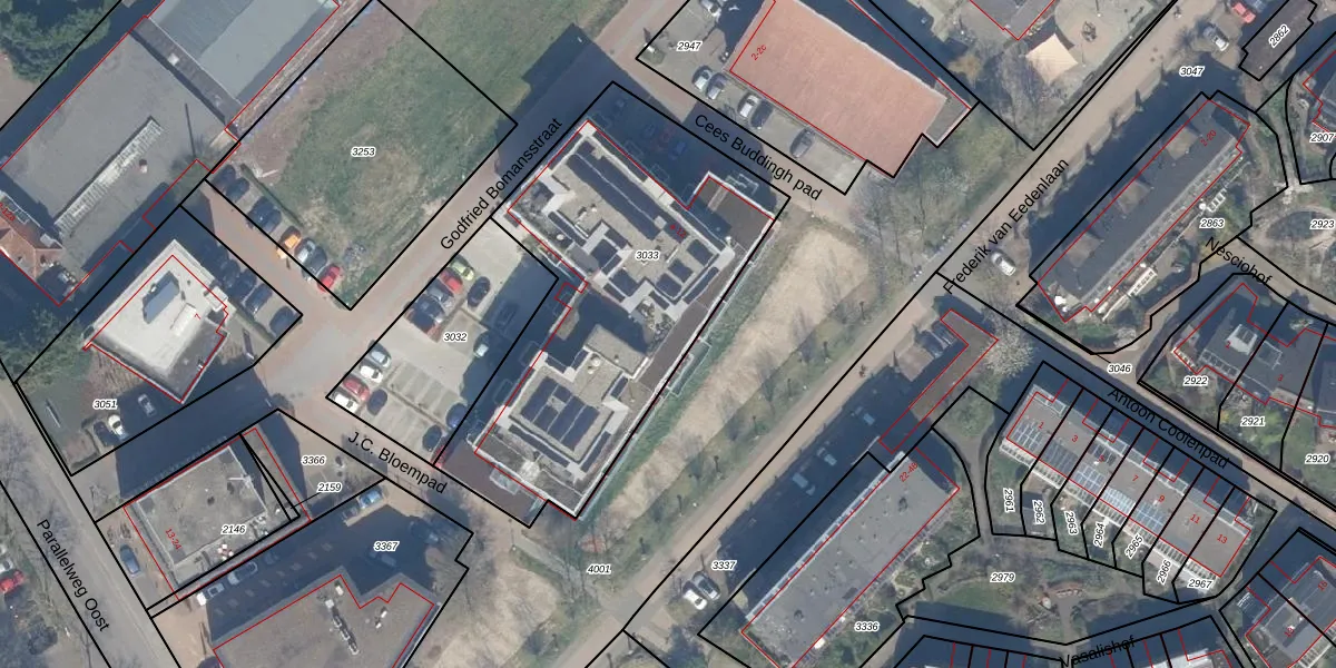 Het perceel waarop Godfried Bomansstraat 6-07 staat heeft een oppervlakte van 1700 m². Dit is een zeer groot perceel. De perceeloppervlakte wordt geregistreerd door het Kadaster. Gedetailleerde informatie over de maten van dit perceel kunt u vinden in het rapport Kadastrale kaart met maatvoering van Godfried Bomansstraat 6-07.