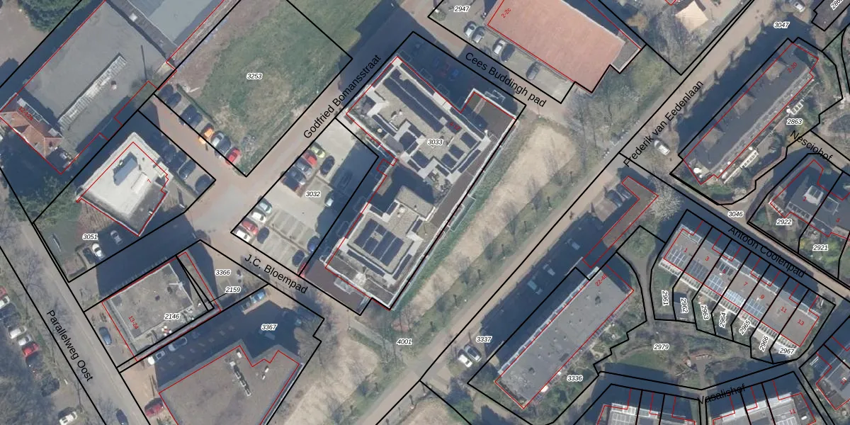 Het perceel waarop Godfried Bomansstraat 8-06 staat heeft een oppervlakte van 1700 m². Dit is een zeer groot perceel. De perceeloppervlakte wordt geregistreerd door het Kadaster. Gedetailleerde informatie over de maten van dit perceel kunt u vinden in het rapport Kadastrale kaart met maatvoering van Godfried Bomansstraat 8-06.