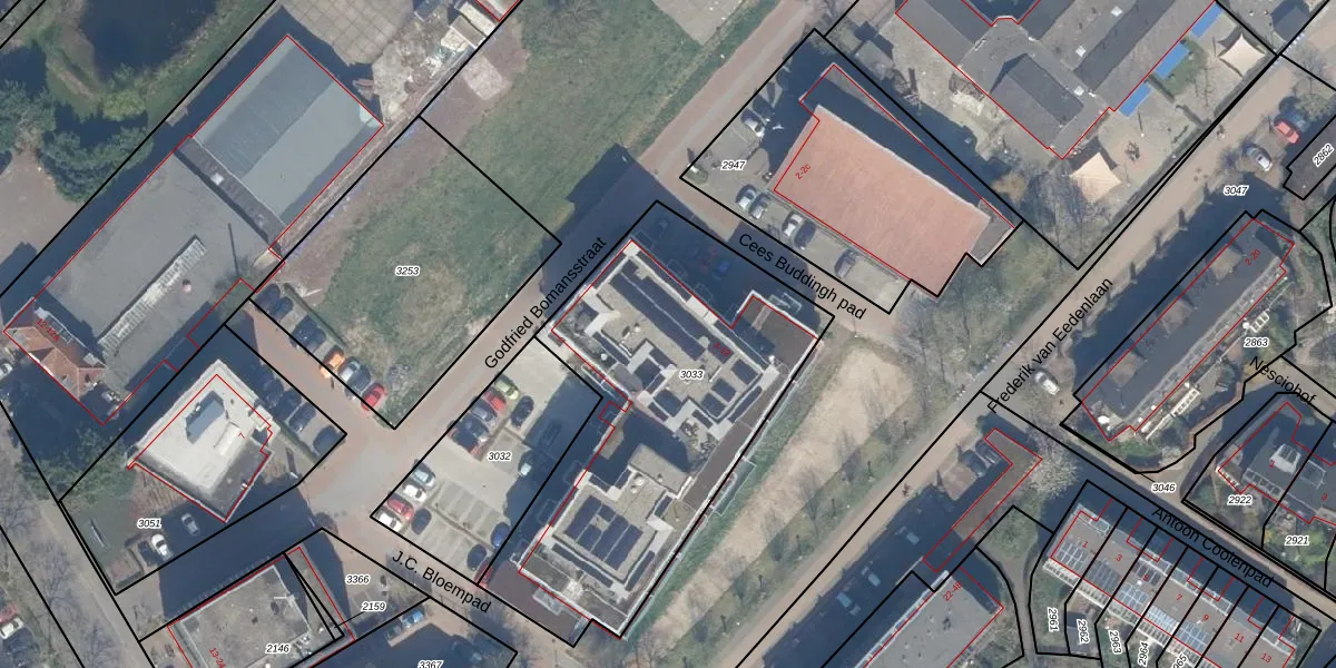 Godfried Bomansstraat 8-12 is gelegen op kadastraal perceel CLB00C3033. Deze kadastrale aanduiding is uniek en wordt gebruikt door het Kadaster om eigendomsrechten en andere zakelijke rechten vast te leggen. Het perceel maakt onderdeel uit van de kadastrale gemeente Culemborg.