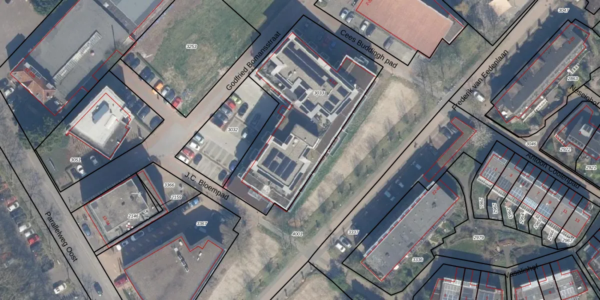 Het perceel waarop Godfried Bomansstraat 8-20 staat heeft een oppervlakte van 1700 m². Dit is een zeer groot perceel. De perceeloppervlakte wordt geregistreerd door het Kadaster. Gedetailleerde informatie over de maten van dit perceel kunt u vinden in het rapport Kadastrale kaart met maatvoering van Godfried Bomansstraat 8-20.