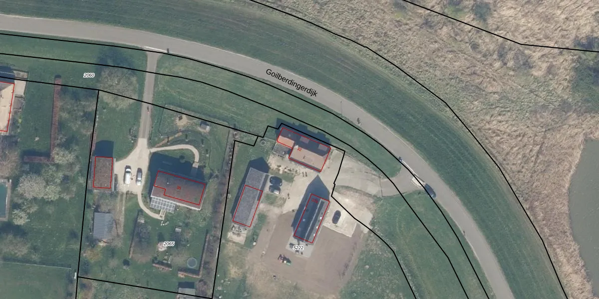 Het perceel waarop Goilberdingerdijk 32 staat heeft een oppervlakte van 3270 m². Dit is een zeer groot perceel. De perceeloppervlakte wordt geregistreerd door het Kadaster. Gedetailleerde informatie over de maten van dit perceel kunt u vinden in het rapport Kadastrale kaart met maatvoering van Goilberdingerdijk 32.